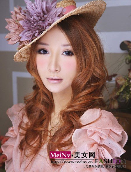 1 为了不使眼睛看起来过于臃肿,可用给人冷静感觉的冰粉色在整个眼窝渲染开来,进行打底,并能够提亮肌肤底色。
