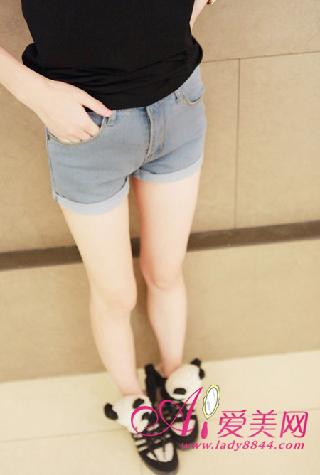 简单卷边浅蓝色牛仔短裤,走到哪里都是一种中性美,随意不拘束,带点小小的复古风情。