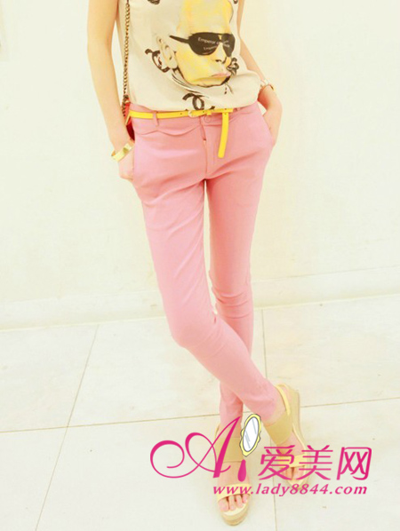 超棒的浅粉色长裤,很衬肤色的说!修身的版型非常好穿。