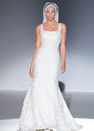 包发花边头纱+双肩带鱼尾婚纱