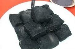 (2)油炸臭豆腐将青矾放入桶内,倒入沸水用棍子搅开,放入豆腐浸泡2h左右,捞出豆腐冷却。然后将豆腐放入卤水内浸泡,春、秋季约需3~5个h,夏季约浸泡2h左右,冬季约需6~10个h,泡好后取出,用冷开水略洗,沥干水分,再将茶油全部倒入锅内烧红,放入豆腐用小火炸约5min,一待焦黄,即捞出放入盘内,用筷子在豆腐中间钻一个洞,将辣椒油、酱油、麻油倒在一起调匀,放在豆腐洞里即成。