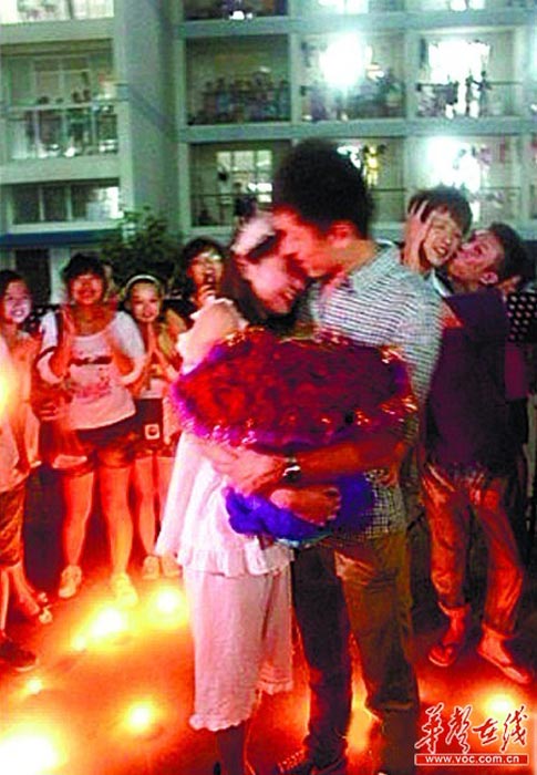 5月31日晚8点,湖南师范大学木兰路学生公寓上演了一出浪漫的求婚剧,一名高富帅携11辆宝马,向湖南师范大学音乐学院一名女学生求婚成功。“让人羡慕,不过希望他们的爱情能经得起考验。”周围同学对此褒贬不一。