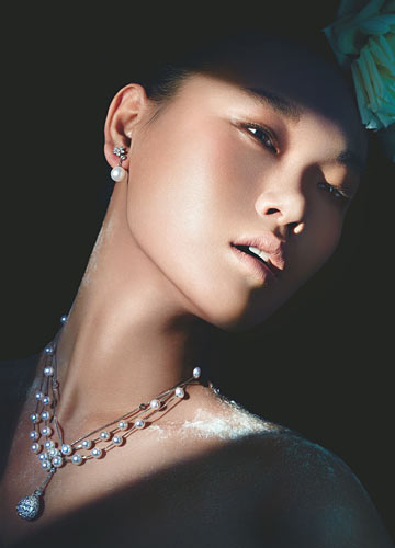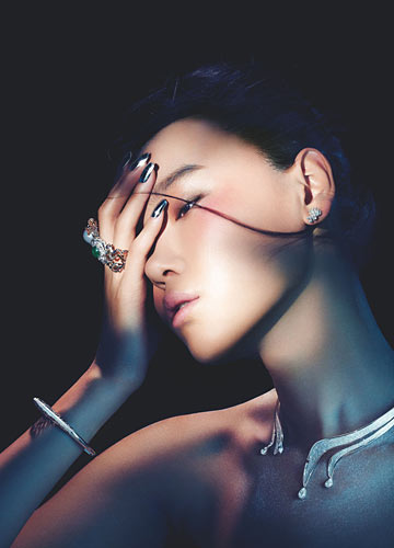 缕缕青丝在面前拂动,优雅姿态散发强大气场,那醉人的夜光映衬得珠宝更加动人闪亮。珠宝佳人融为一体,幻化成艺术品,发出美丽的光芒。