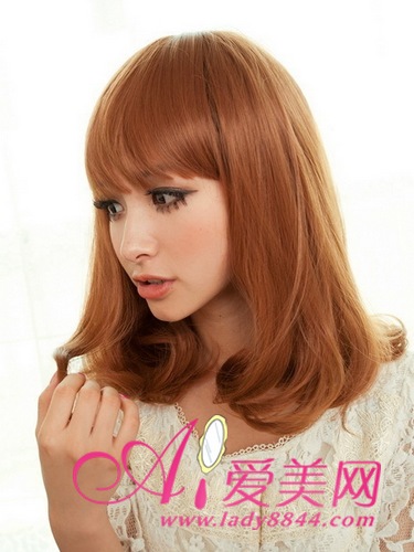 斜刘海多显了一分气质与成熟,而中长度的卷发也是许多美眉们的大爱款之一,往外延伸的卷度加上棕发后,更是一款知性又成熟的假发发型。