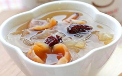 原料:银耳2朵、红枣30克、桂圆50克、冰糖40克、水1000克