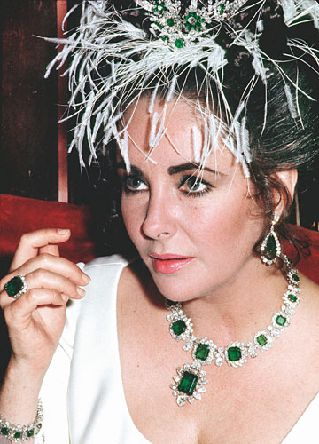伊丽莎白·泰勒佩戴宝格丽Bulgari的白金镶钻祖母绿珠宝