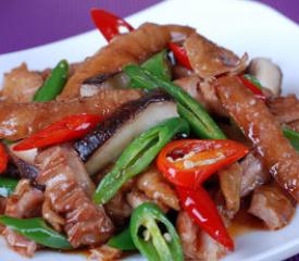 用料 :猪大肠 小尖青椒(小尖红椒)料酒 葱段 姜丝 八角1个 花椒少许 白糖适量 生抽 盐 水