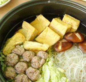 原料:新鲜羊肉馅500克,白菜1/4颗,粉丝1把,豆腐1块,香菇6只。