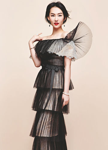 修长及地的捏褶蛋糕长裙,淑女气质尽显,窈窕的层次美感,轻而易举打造婀娜曲线。