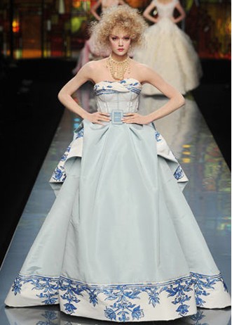 Dior给了国人一个大大的惊喜———把青花瓷概念运用到高级定制礼服上。一时间,青花瓷图案成为最热门的时尚看点。