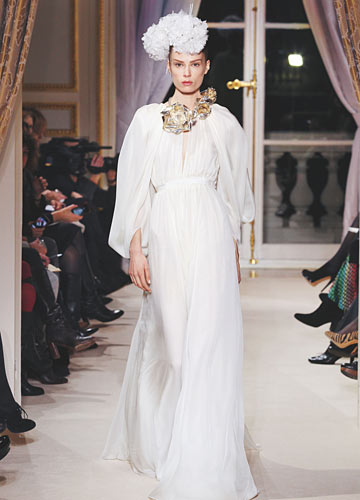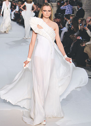 2012春夏巴黎高级定制时装周刚落下帷幕,各大设计师不约而同地选择让美丽如幻的婚纱轻盈地飘在T台上。个性的、唯美的、艺术感的、公主型的……各式婚纱让人应接不暇,快好好感受大师的设计吧,为自己的嫁衣寻找最美的灵感。