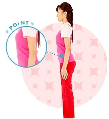 左右脚后跟紧贴站直全身,肩胛骨下压