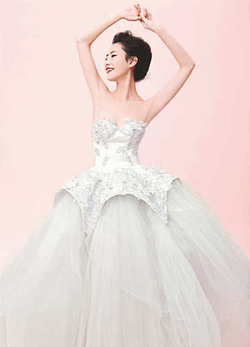 天鹅湖芭蕾舞裙的优雅,受《黑天鹅》电影的灵感启发,最新一季的婚纱设计,都有着“飘飘欲仙”的想法,轻盈的裙摆,长至脚踝的长度,以及法国蕾丝带来的梦幻,我希望能帮每一个新娘圆一场浪漫之梦。