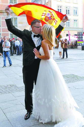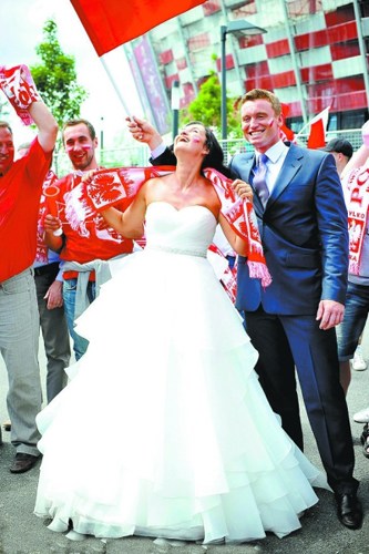 欧洲杯场内战事正酣,场外的球迷们却趁此四年一次的良机,扎堆办起了人生大事——结婚!认识的不认识的球迷,只要是志同道合,统统成了背景,有这么多的祝福,新人们当然会愈加甜蜜。