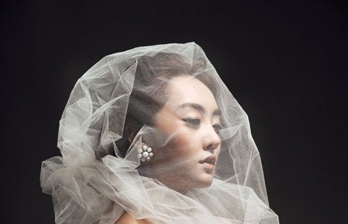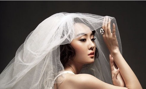 柔然轻薄的头纱经过褶皱或垂搭的设计处理,将新娘的前额轻轻盖过,自然营造出新娘丰满的轮廓,新娘双眸闪烁在若隐若现的白纱中,仿佛从古老的神话中穿越而来的公主,圣洁而又神秘性感,非常适合隆重的大型婚礼。
