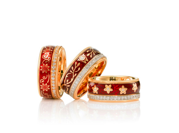 华洛芙珠宝早在创立之际便为英国皇室、欧洲贵族和沙皇定制珠宝,在此次全新的龙年红色祈愿系列指环上,采用了皇家贵族特有的花纹设计。为了迎合中国传统的农历新年,华洛芙以独创的冷珐琅技术,绘制了华美高贵的红色。冷珐琅独特的透视感和耐磨性,将使这抹龙年红色在未来的岁月中玲珑剔透、历久如新。