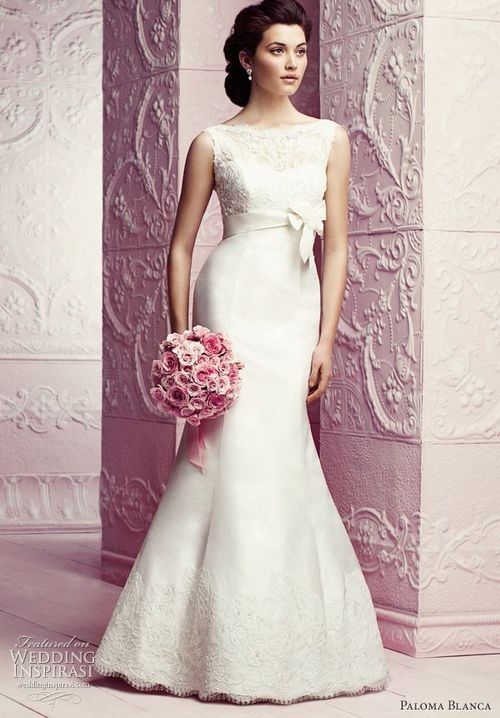 熟女气质无袖蕾丝婚纱,简洁的小鱼尾修身设计,恬静的小手捧花低调不失高雅气质。
