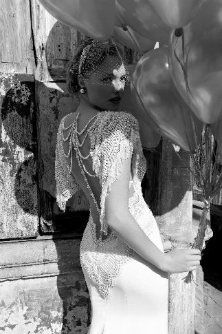 著名的婚纱设计师Galia Lahav在2012春夏之际推出了一系列好莱坞复古唯美婚纱,本系列婚纱不仅仅具有好莱坞式的复古气质,同时也具有现代时尚的精髓理念。大片采用黑白色调的表现手法,无论是在室内或是室外,都带给我们恬淡宁静的幸福感。简单的剪裁轮廓,嵌入珍珠、薄纱、蕾丝等元素,华美感与奢侈感完美展现。