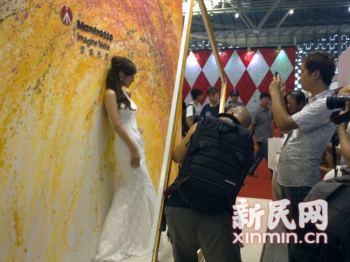 第22届上海国际婚纱摄影器材展览会暨国际儿童摄影、主题摄影、相册相框展览会7月5日在上海世博展览馆拉开帷幕。新民网记者现场了解到,这个往届举行时爆棚的展会,此次在38度的高温日举行,同样引来人山人海的参观者。其中,不少观众冲着婚庆市场以外的消费而来。