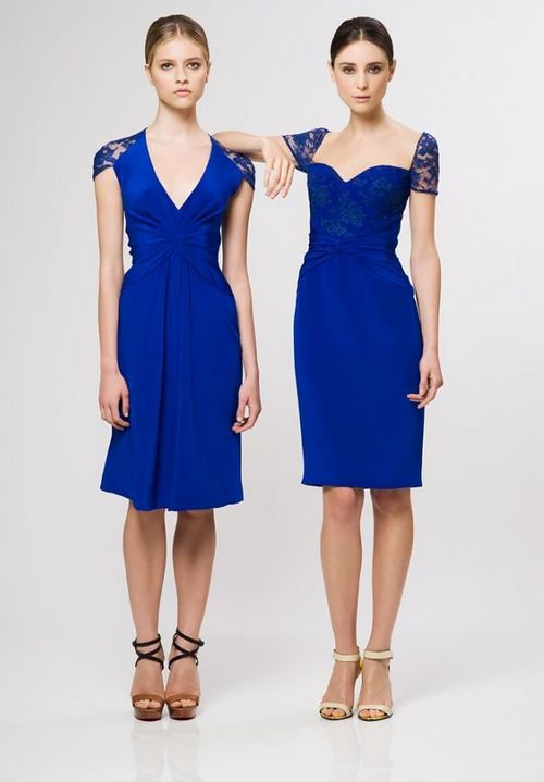 耀眼的宝石蓝色礼服,蕾丝与缎面的完美结合,深V领口,性感十足。
