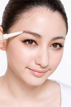 对于不太了解怎样描绘眉彩的人来说,建议先依照前面所介绍的眉头、眉峰、眉尾找出正确位置用眉笔框出线条,接着再开始画眉毛。