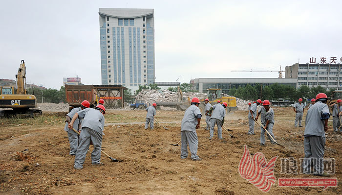 19日上午,记者在沂蒙革命纪念馆片区建筑工地看到,工作人员正在紧张施工。