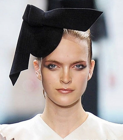 另类的发饰是摩登新娘的最爱,黑色布料仿蝴蝶结发饰让新娘十分出众。
