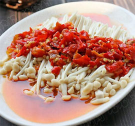 7、剁椒酱30克、鸡精1/2小勺、胡椒粉1/4小勺、辣椒油20克、醋15克调成味汁;