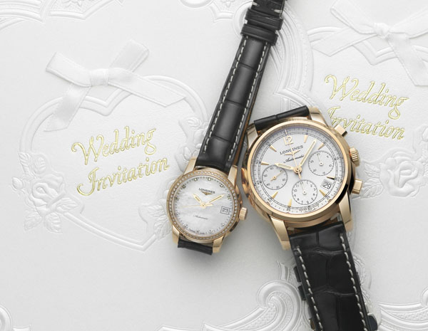 以白色与金色搭配而成的纯美请柬,邀约挚爱亲朋见证这圣洁美丽的时刻。“我愿意”,“不离不弃”,这发自内心的真挚誓言和着爱侣腕间对表的执着清灵嘀嗒声将成为人生最美的珍藏。浪琴表索伊米亚Saint-Imier系列的灵感源于品牌悠久精纯制表传统的创始发祥之地,流利的线条及独立于表壳的表耳赋予这些新品一种经典与现代设计之间的绝妙平衡。系列中以玫瑰金为材质的款式,那散发着温暖光芒的金属静静释放一股迷人的能量,表盘玫瑰金色时刻与指针完美搭配玫瑰金表壳,再配上棕色短吻鳄鱼皮表带,女装款式散发清新纯美,男装款式十足绅士感。在与挚爱共赴一生之约的重要时刻,选择这对尊贵腕表,任时光流逝,始终见证一份永不褪色的真爱。