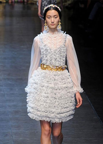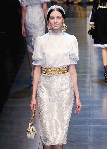 在此前的2012秋冬纽约时装周“婚纱”盘点中,白裙、红裙&金属色礼服互不相让,而在米兰时装周的秀场上,剩下了白色礼服一枝独秀。不过不必担心会不出彩哦,不同风格白裙之间的“竞争”更为激烈,“穿Dolce&Gabbana的天使”、Max Mara藏在极简外套下的性感礼服、Alberta Ferretti一半古典一半仙的气质,谁会在你心中排第一、给你带来最多的新娘婚纱礼服造型灵感呢?