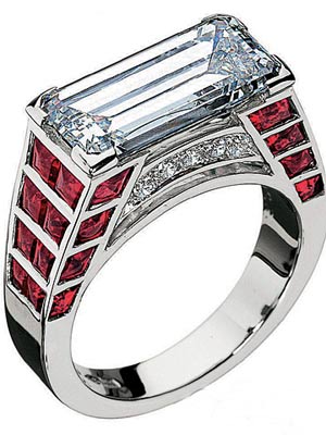 结构红色:红宝石切割得有棱有角,十分合拍地镶嵌在线条流畅的设计作品中,浓郁大气。