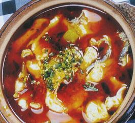 番茄切成片;草鱼批成大片,上浆,焯沸水;酸菜切片用熟猪油煸香,装入沙锅,加入浓白汤、番茄片、野山椒烧沸,用精盐、鸡精、味精调味后铺上草鱼片,上面撒上蒜泥、葱花、姜末,淋上加热的红油,撒上胡椒粉即可。