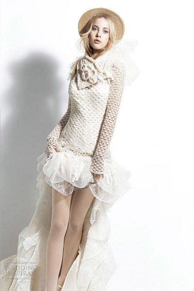 前短后长的设计非常适合娇小身材的新娘。
