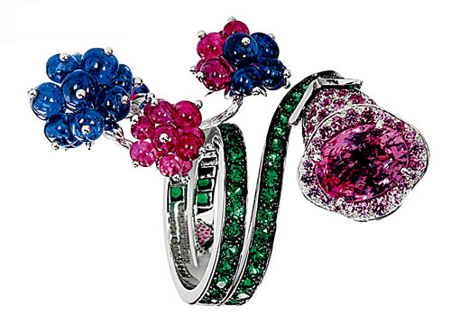 缤纷的色彩铺陈在世界的每一个角落,看看那些小颗粒彩宝镶嵌的造型戒指吧,多重色彩不仅大大增加了创意的空间,也让你有了无数的搭配方案。