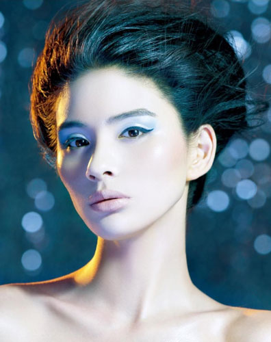 珠光蓝+紫,塑造几何形眼妆