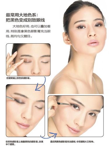 大地色好用,也可以叠加着用,特别是拿黑色眼影膏充当眼线,既均匀又醒目。