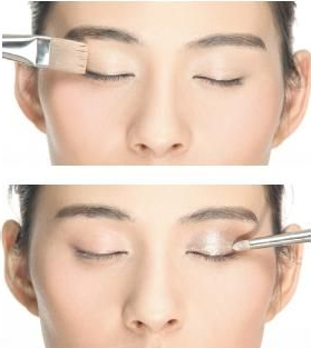 在全脸打底之后,眼皮处不要用散粉定妆,容易搓泥,而是用粉底液涂抹完就OK了,正所谓眼影粉就和粉一块用,眼影膏就和膏状、液状质地的产品一块用。