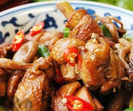 鸡腿肉两只、干菌150克、青椒3只。