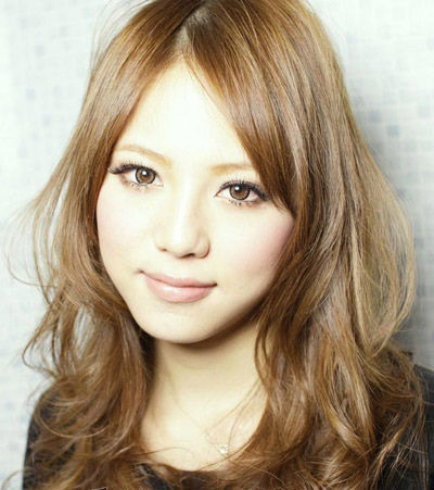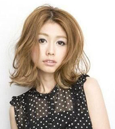 多层次的外翻卷发也可以把圆脸修饰成笑脸。将卷发的层次加厚,卷发的弧度加大,可以拉长脸型。然后配合上修饰脸型的斜刘海,脸的线条就变得更柔和。