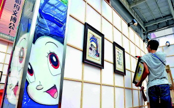 三层是台湾、国际展馆的集中地,3层C区有两个国际展馆,29日下午,国际展馆(二)里已经挂满了日本的漫画手稿,据参展商介绍,铁臂阿童木的手稿就将在这个展厅里首次现身。另外经典动漫原画《赛道之狼》和《小甜甜》也将在这里展示,这些手稿在国内均为首次展出,动漫迷们可以在展会上一饱眼福。