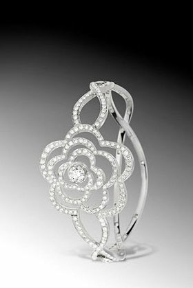 镂空设计的山茶花手镯,香奈儿的经典之作。