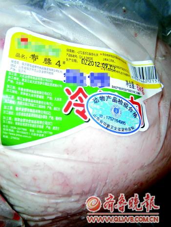 ▲进入肉店的品牌冷鲜肉上,通常都已贴上检疫合格标志。