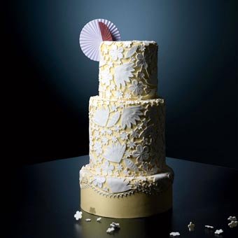 漂亮的蕾丝会令款式简洁的婚纱顿生光彩。蛋糕也是如此,看看这蛋糕上的蕾丝纹样,令人马上联想到优雅的古典美。