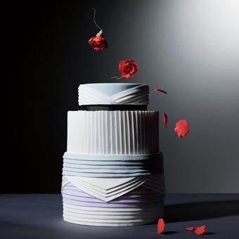 这与刚刚大的立体褶皱有所不同,普利兹褶特指这种细而密的压褶,在婚纱上这种细密的褶皱可以增加线条感,使新娘看起来身材窈窕。在蛋糕中则很有层次感,而且看起来很具有现代艺术的气息。