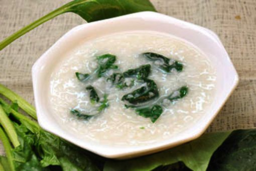 配制:菠菜500克,粳米200克,猪油25克,精盐5克,味精3克,胡椒粉2克,加水适量,共煮成粥。