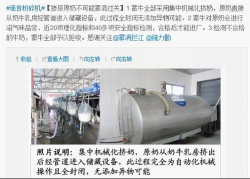 蒙牛:粉碎谣言挤奶过程全封闭无添加可能