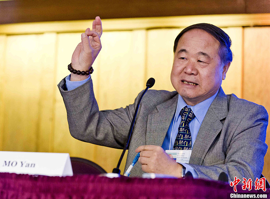 当地时间10月11日,瑞典皇家科学院诺贝尔奖评审委员会宣布中国作家莫言获得2012年诺贝尔文学奖。图为2010年10月16日,中国作家莫言第二届中美文化论坛上在发言。中新社发 陈钢 摄