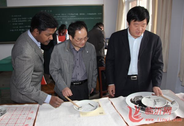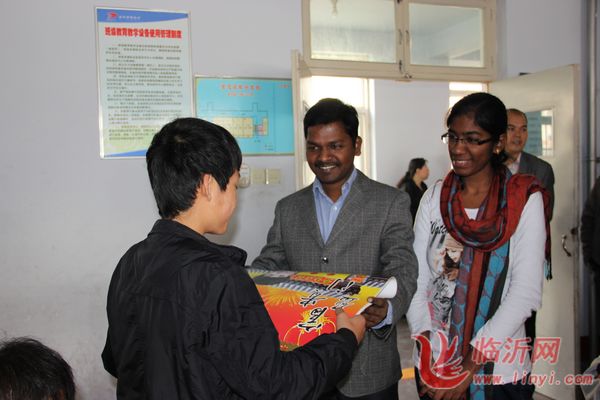 贴着“关爱盲童 拓普在行动”字样的爱心货车为盲童孩子带来了饮水机、暖瓶、牙膏牙刷、香皂等生活用品和火腿肠、饼干、牛奶等食品。被刚刚评选为“临沂市荣誉市民”的印度籍专家BABU和技术专家KAMALAM代表拓普公司现场为孩子发放捐助物资,之后拓普公司的爱心团队参观了临沂特殊教育中心的康复教育功能室、素质教育教室和工艺美术(脸谱)、剪纸、书法、珠串编制等实用型专业教室,大家对残疾学生们的作品赞叹不已。