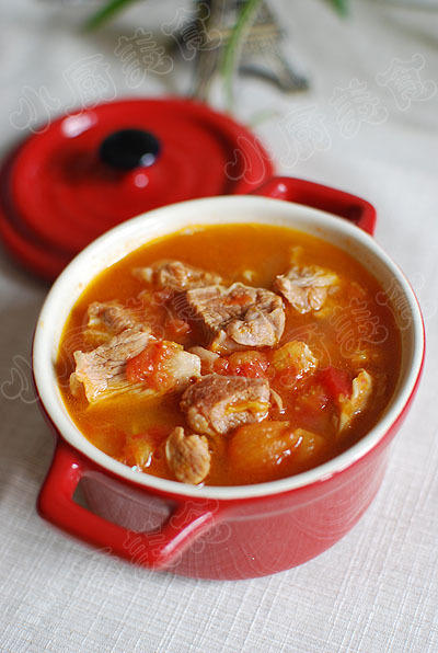 8】一小时后加入番茄继续炖1小时,出锅前加盐即可。