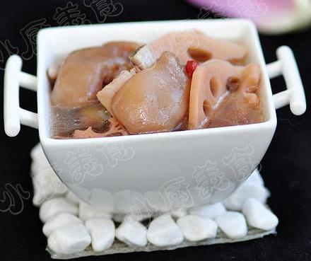 【材料】莲藕 猪手(猪前蹄) 枸杞 黄酒 姜片 盐